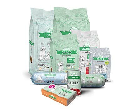 Jarco is een Nederlands bedrijf dat hondenvoer en kattenvoer maakt. De eerste voedingen ontwikkelde en testte het bedrijf eind jaren zestig, dit deden ze samen met (collega-)fokkers. Jarco brokken zitten in vrolijke verpakkingen en zijn ontwikkeld om je hond of kat natuurlijk gezond te houden. Het hondenvoer bijvoorbeeld geeft je hond volop energie en voeding, de brokken van Jarco zijn een compacte brok die in de maag uiteenvalt. Ze zijn licht verteerbaar. En dankzij de toevoeging van extra ingrediënten – onder meer zalmolie – geven de brokken je hond of kat een gezonde huid en een glanzende vacht.