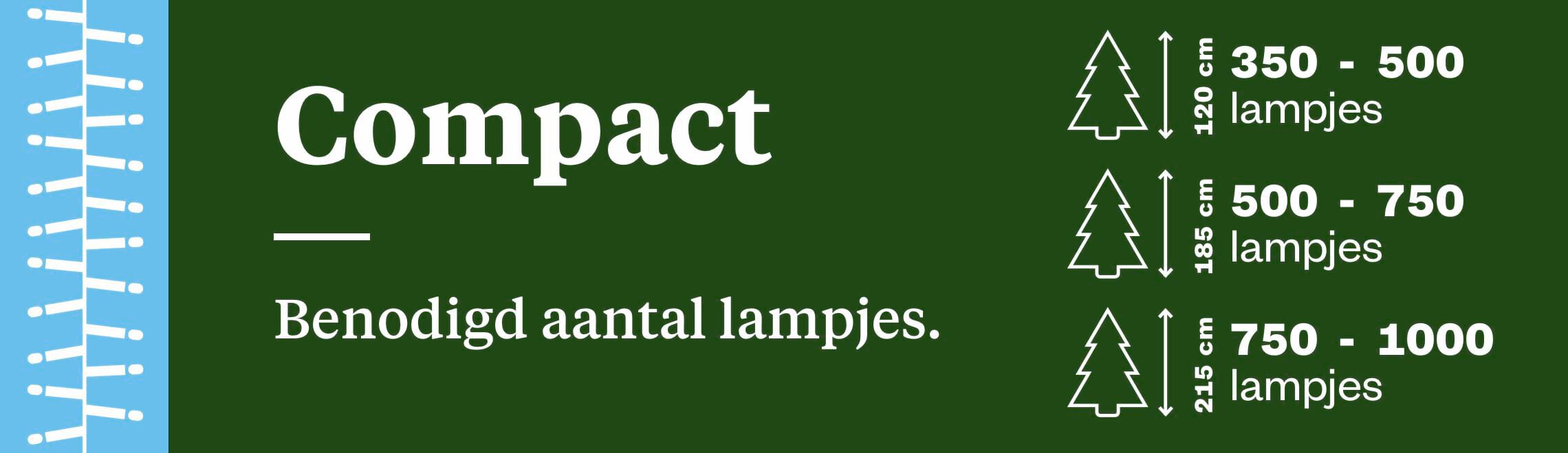 Bij Compact verlichting zitten de lampjes wat dichter bij elkaar - ongeveer om de 2 cm.